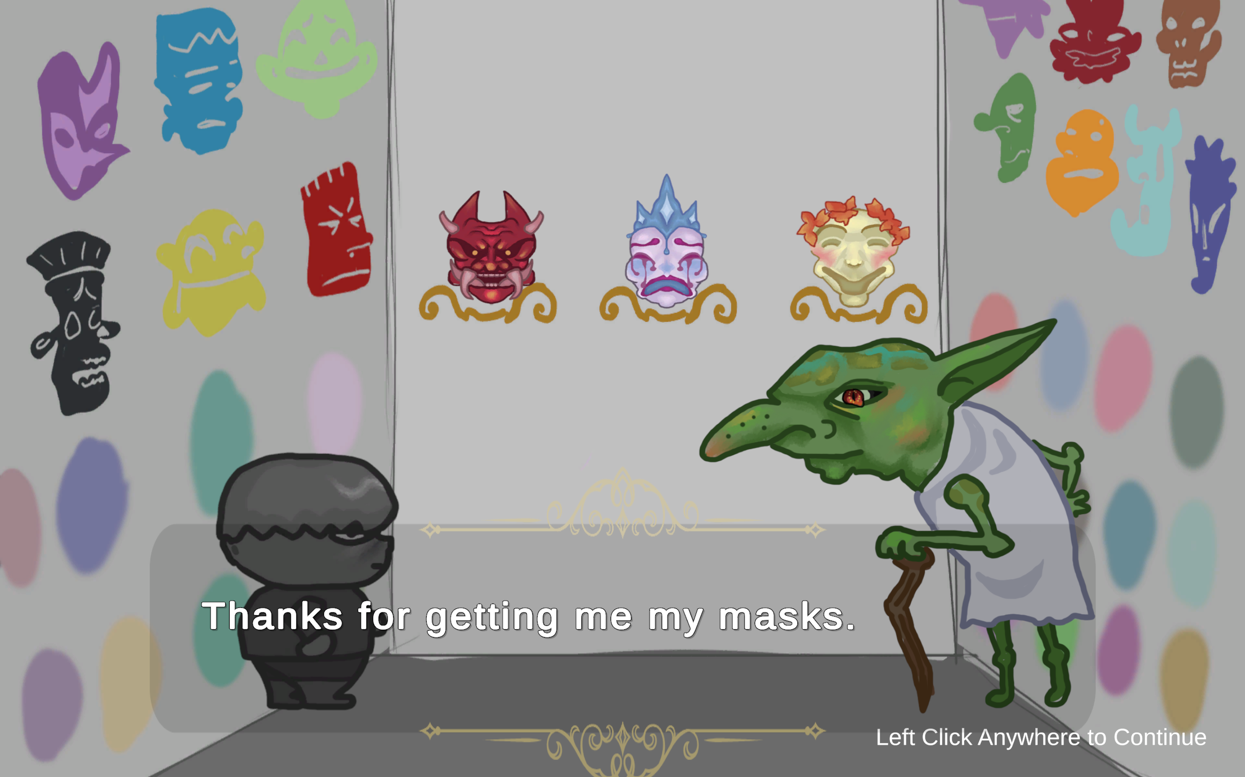 Strategically switch between masks to navigate the environment, leap across objects, and reach the exit. Choosing the right mask at the right moment is the key to survival and the only way to progress to the next stage.